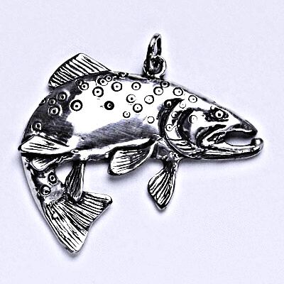 Stříbrný přívěsek s patinou,pstruh obecný,potočný - potočák,stříbrná ryba, P 983