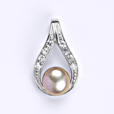 Stříbrný přívěšek s přírodní růžovou perlou. Průměr perly je 8 mm. Celková výška přívěšku je 21 mm. Materiál je stříbro 925/1000.