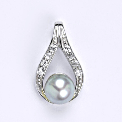 Stříbrný přívěšek s přírodní stříbrnou perlou. Průměr perly je 8 mm. Celková výška přívěšku je 21 mm. Materiál je stříbro 925/1000.