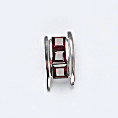Stříbrný přívěsek je zdoben přírodními granáty. Rozměr přívěsku na výšku je 15 mm a na šířku 8 mm. Orientační váha přívěšku je 1,74 g. Materiál je stříbro 925/1000.