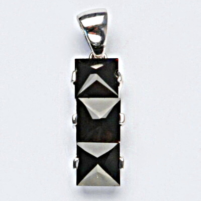 Stříbrný přívěsek je zdoben přírodními granáty. Rozměr přívěsku na výšku je 30 mm včetně očka a na šířku 7 mm. Orientační váha přívěšku je 3,43 g. Materiál je stříbro 925/1000.