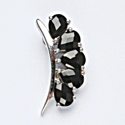 Stříbrný přívěsek je zdoben přírodními granáty. Rozměr přívěsku na výšku je 25 mm a na šířku 9 mm. Orientační váha přívěšku je 4,12 g. Materiál je stříbro 925/1000.