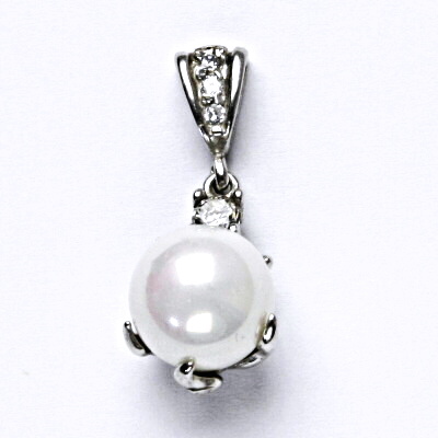 Stříbrný přívěšek s um.perlou, přívěsek ze stříbra,bílá perla se skutečným perleťovým leskem P 1190/2