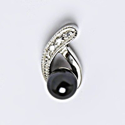Stříbrný přívěšek s černou umělou perlou. Průměr umělé perly je 6 mm. Velikost přívěšku je 18 mm.