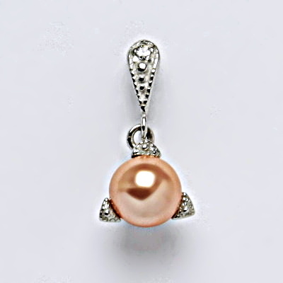 Stříbrný přívěšek s lososovou umělou perlou.Velikost umělé perly je 8 mm. Velikost přívěšku je 20 mm.