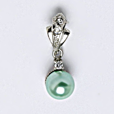 Stříbrný přívěšek se zelenou umělou perlou.Velikost umělé perly je 6 mm. Velikost přívěšku je 23 mm.
