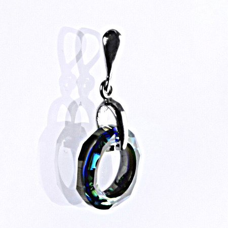 Stříbrný přívěsek s krystalem Swarovski průměr 14 mm. Barva Cosmic ring bermuda blue.Celková délka přívěsku - 24 mm.Tyto šperky mají povrchovou úpravu - čisté Rhodium.