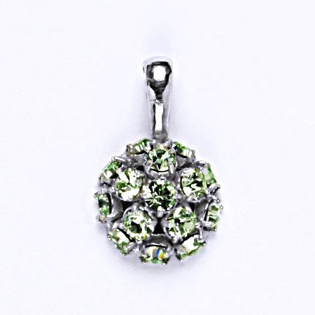 Stříbrný přívěšek půlkoule se Swarovski krystaly chryzolit. Velikost přívěšku je 20 mm. Materiál je stříbro 925/1000. K přívěsku nabízí náš E-shop i náušnice či prsten do soupravy.