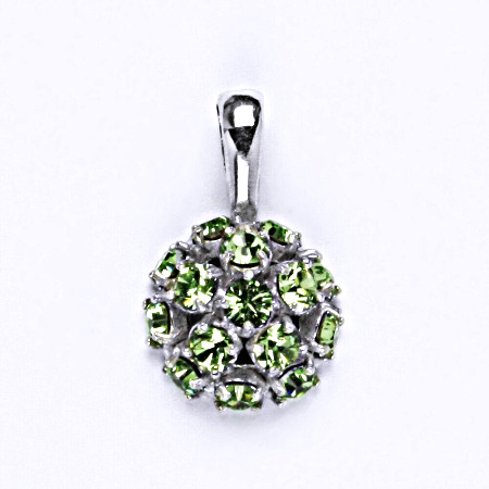 Stříbrný přívěšek půlkoule se Swarovski krystaly peridot. Velikost přívěšku je 20 mm. Materiál je stříbro 925/1000. K přívěsku nabízí náš E-shop i náušnice či prsten do soupravy.