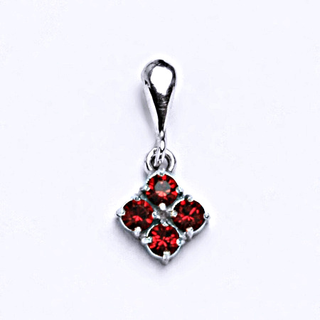 Stříbrný přívěšek s krystalem swarovski light siam. Celková velikost přívěšku i s úchytem je 20 mm. Kameny jsou pevně uchyceny v kovu, záruka na vypadávání. Tyto šperky se dají zakoupit do soupravy s koulemi, které najdete v naší nabídce.
