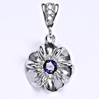 Stříbrný přívěšek se syntetickým ametystem, kytička, P 1434/2