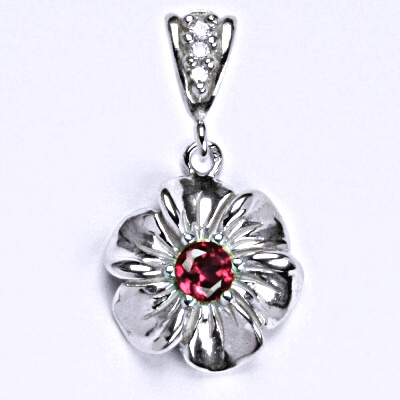 Stříbrný přívěšek se syntetickým rubínem, kytička, P 1434/2