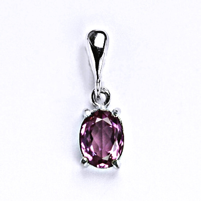 Stříbrný přívěsek se syntetickým zirkonem fuchsia.Velikost oválného krystalu - 8x6 mm.Celková výška přívěsku je 19 mm.Tyto šperky jsou s povrchovou úpravou - čisté Rhodium.