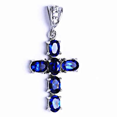 Stříbrný přívěšek , kříž ,syntetické spinely - P 1239/2
