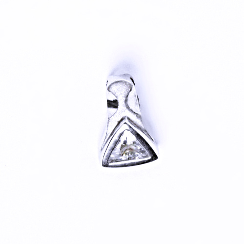 Stříbrný přívěsek s bílým zirkonem je zdoben pískováním(matováním).Celková výška přívěsku je 13 mm.K povrchové úpravě šperku bylo použito čisté Rhodium,které nezpůsobuje žádné alergie.