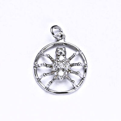 Stříbrný přívěšek ve tvaru pavouka s čirými zirkony. Velikost přívěšku je 21 mm. Materiál je stříbro 925/1000. Přívěšek má povrchovou úpravu čisté rhodium.