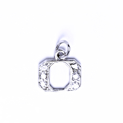 Stříbrný přívěšek ve tvaru písmenka "O" s bílým syntetickým zirkonem. Velikost přívěšku i s ouškem je 16 mm.