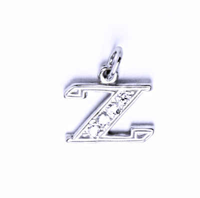 Stříbrný přívěšek ve tvaru písmenka "Z" s bílým syntetickým zirkonem. Velikost přívěšku i s ouškem je 16 mm.