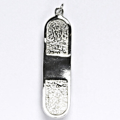 Stříbrný přívěsek ve tvaru skateboard. Celková výška přívěsku je 35 mm. Orientační váha přívěsku je 2,50g.Materiál je stříbro 925/1000.