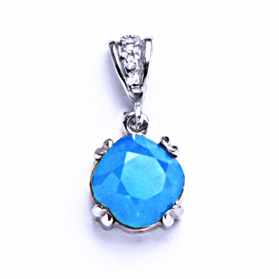 krystal Svarovski 10x10 Caribbean Blu Opal, stříbrný přívěšek, šperky. Orientační váha přívěsku je 2,18 g.