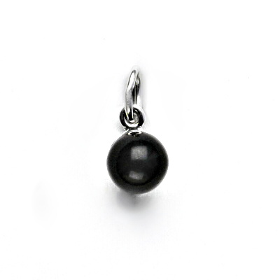 Stříbrný přívěsek s umělou perlou černé barvy. Průměr perličky je 6 mm, celková výška přívěsku 13 mm. Šperk je vyroben ze stříbra 925/1000 a je porhodiován. Orientační hmotnost 0,44 g.