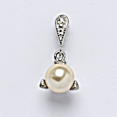 Stříbrný přívěšek se světle lososovou umělou perlou.Velikost umělé perly je 6 mm. Velikost přívěšku je 20 mm.