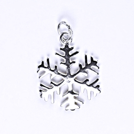 Stříbrný přívěšek ve tvaru vločky. Velikost přívěšek i se závěsem je 22 mm. materiál je stříbro 925/1000. Orientační váha přívěsku je 1,27 g.