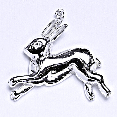 Stříbrný přívěsek ve tvaru zajíce. Celková výška přívěsku je 33 mm. Orientační váha přívěsku je 5,06 g. Materiál je stříbro 925/1000.