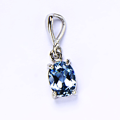 Přívěsek je zdoben syntetickým akvamarinem o rozměru 8x6 mm. Materiál přívěsku je stříbro 925/1000.