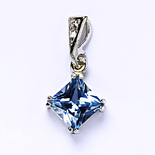 Přívěšek je zdoben syntetickým akvamarinem o rozměru 7x7 mm. Materiál přívěšku je stříbro 925/1000