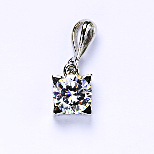 Stříbný přívěsek se zirkonem v barvě čiré o velikosti 7 mm. Materiál přívěšku je stříbro 925/1000. Orientační váha přívěsku je 1,50 g.