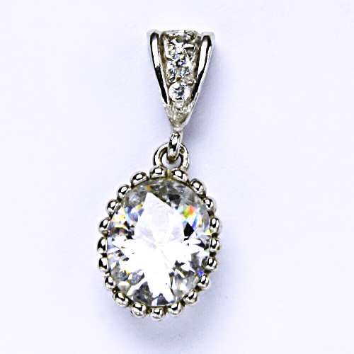 Stříbrný přívěšek je zdoben čirým zirkonem o rozměru 10x8 mm. Materiál přívěšku je stříbro 925/1000.