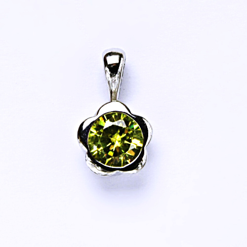 Stříbrný přívěšek je zdoben syntetickým olivínem 6 mm. Materiál přívěšku je stříbro 925/1000.