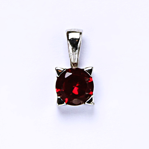 Stříbrný přívěšek je zdoben syntetickým rubínem 6 mm. Materiál přívěšku je stříbro 925/1000. Orientační váha přívěsku je 1,50 g.