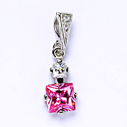 Přívěsek je zdoben růžovým zirkonem o velikosti 6 mm. Materiál přívěsku je stříbro 925/1000.