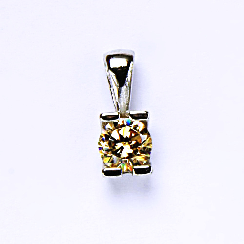Stříbrný přívěšek je zdoben žlutým zirkonem o průměru 6,5 mm. Přívěšek je vyroben ze stříbra 925/1000.
