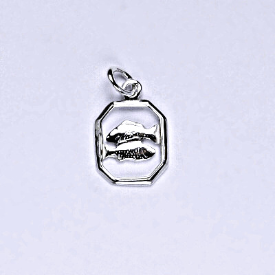 Stříbrný přívěsek znamení zvěrokruhu ryba. Celková výška přívěsku je 18 mm. Orientační váha přívěsku je 0,51 g. Materiál je stříbro 925/1000.
