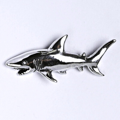 Stříbrný přívěšek ve tvaru žraloka s patinou. Ryzost stříbra je 925/1000. Orientační váha je 3,63 g. Rozměry přívěšku jsou 17 mm na výšku i s očkem a 43 mm na šířku.