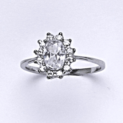Stříbrný prsten s čirými zirkony. Velikost zirkonu je 7x5mm. Materiál je stříbro 925/1000.