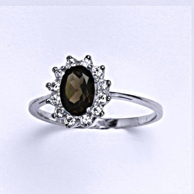 Stříbrný prsten s přírodním kamenem - záhněda a čirými zirkony. Velikost kamenu je 7x5mm. Materiál je stříbro 925/1000.