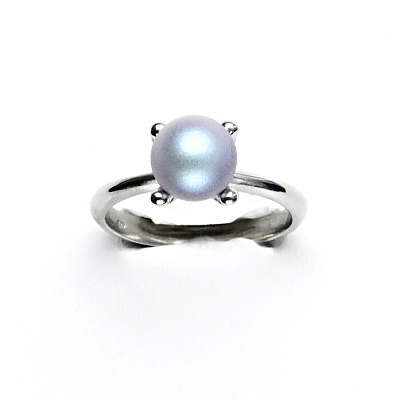 Stříbrný prsten, Swarovski perla iridescent light blue, T 1400