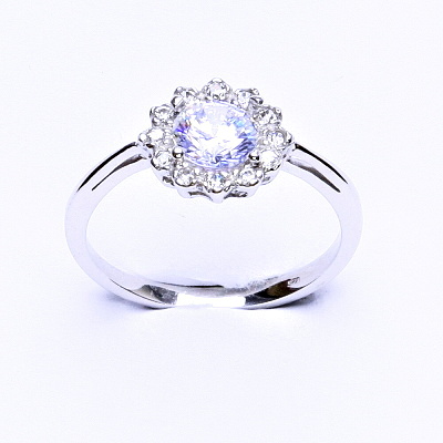 Stříbrný prsten, čiré zirkony, T 1495
