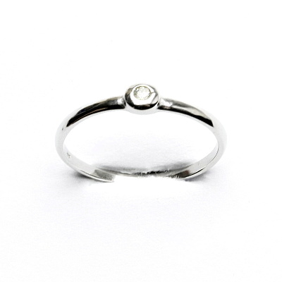 Stříbrný prsten zdobený zirkonem o průměru 2 mm, čirá barva. Šperk působí velice jemným dojmem, je vhodný pro ženy jakéhokoliv věku a pro jakoukoliv příležitost. Vyhotoveno ze stříbra ryzosti 925/1000, povrchová antioxidační úprava čisté rhodium. Orientační hmotnost prstenu při velikosti 57 je 1,09 g. Nabízíme v široké škále velikostí.