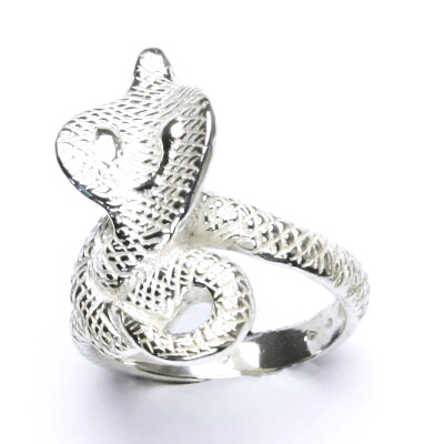 Stříbrný prsten ve tvaru kobry. Rozměr zdobné části prstenu je 24x17 mm. Materiál je stříbro 925/1000. Orientační váha prstenu ve velikosti 53 je 7,43 g.