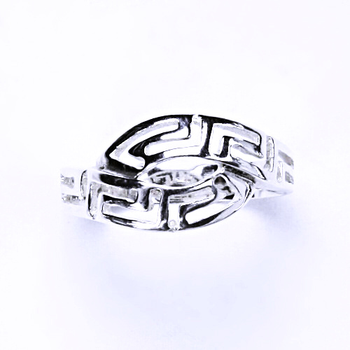 Stříbrný prstýnek s řeckým motivem. Materiál je stříbro 925/1000. Šířka horní části prstenu je 10 mm. Orientační váha prstenu ve velikosti 55 je 2,24 g.