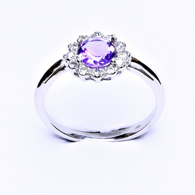 Stříbrný prsten, přírodní ametyst světlý, čiré zirkony, T 1495