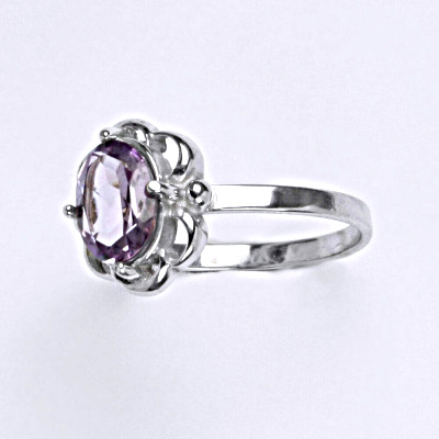 Stříbrný prsten s přírodním ametystem světlým o rozměru 8x6 mm. Materiál je stříbro 925/1000. Prsten má povrchovou úpravu čisté rhodium.