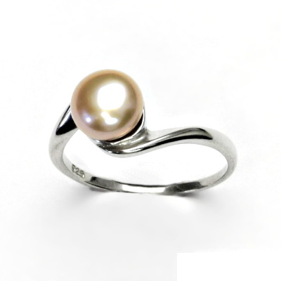 Stříbrný prstýnek je zdoben růžovou přírodní říční perlou o průměru 7,5 - 8 mm. Materiál je stříbro 925/1000. Prstýnek má povrchovou úpravu čisté rhodium.