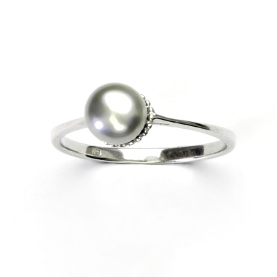 Stříbrný prstýnek je zdoben stříbrnou přírodní říční perlou o průměru 7,5 - 8 mm. Materiál je stříbro 925/1000. Prstýnek má povrchovou úpravu čisté rhodium.