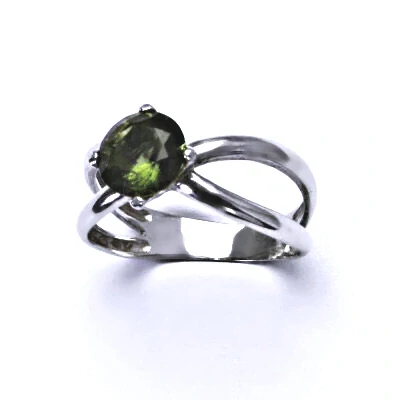 Stříbrný masivní prsten zdobí přírodní vltavín o velikosti 7 mm